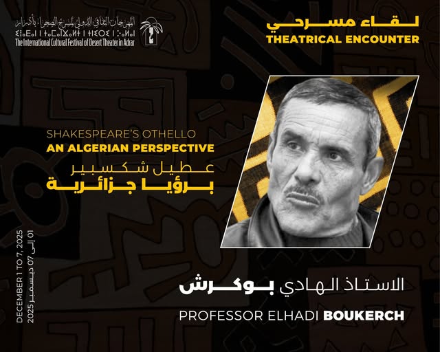 كما سيجمع لقاء مسرحي متميز وخاص في محفل أدرار المسرحي العالمي، ينشطه الأستاذ الهادي بوكرش مع النقاد والمختصين والمهتمين والجمهور، من خلال تقديم رؤيا جزائرية جديدة ومختلفة عن عطيل شكسبير، فمنديل شكسبير يراه الهادي بوكرش خمارا؟