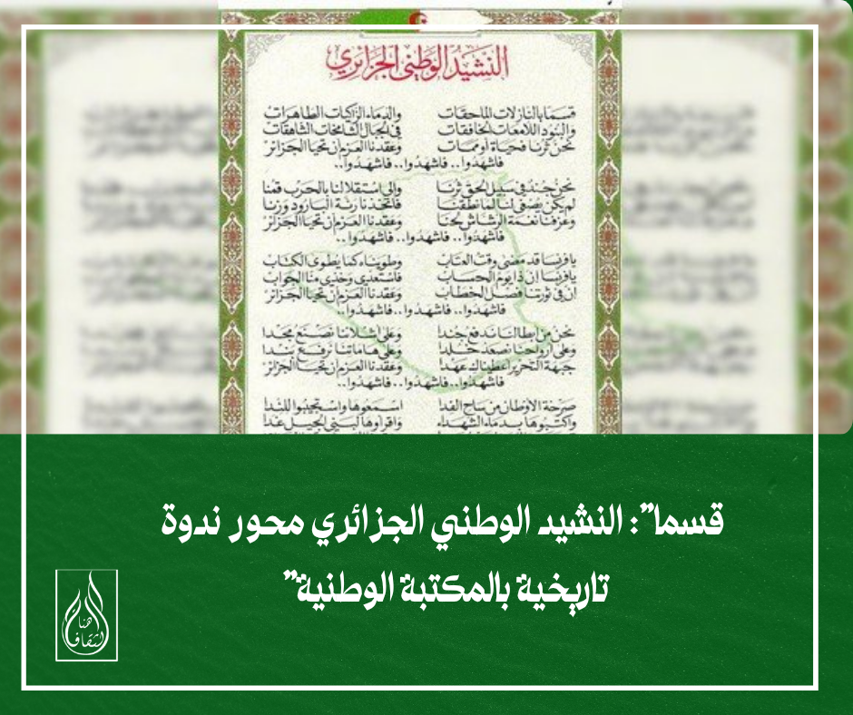 احتفالًا بالذكرى السبعين لتأليفه، كان النشيد الوطني الجزائري “قسما” محور ندوة تاريخية أُقيمت في الجزائر العاصمة، تزامنت مع التحرك الشعري العالمي لنصرة القضية الفلسطينية.