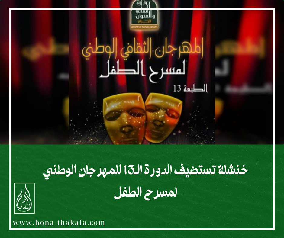 تستعد ولاية خنشلة لاحتضان فعاليات الدورة الـ13 للمهرجان الوطني لمسرح الطفل، خلال الفترة الممتدة من 23 إلى 27 يونيو. ستشهد هذه الدورة تنافسًا محتدمًا بين 8 عروض مسرحية على “الإبزيم الذهبي” للمهرجان، وفقًا لما صرح به محافظ المهرجان، السيد طارق عشبة. 8 عروض تتنافس على الإبزيم الذهبي ومشاركة واسعة خلال ندوة صحفية عُقدت اليوم بدار… متابعة قراءة خنشلة تستضيف الدورة الـ13 للمهرجان الوطني لمسرح الطفل